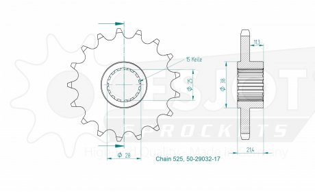 sprednji zobnik 525 - 15 zobnik od Esjot