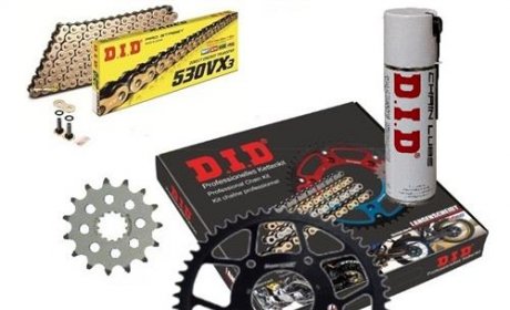 Vsebuje: sprednji zobnik + zadnji zobnik + veriga + sprej DID 300 ml