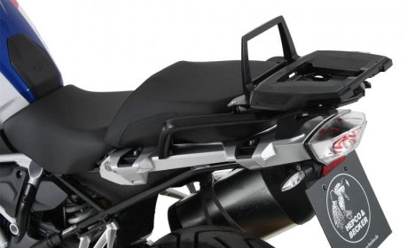 Nosilec za zgornji kovček, ki je sestavljen iz kompleta za montažo, specifičnega za model, in adapterske plošče Alurack za montažo zgornjih kovčkov Hepco & Becker ali mehke prtljage (ni primeren za zgornje kovčke z univerzalno plastično ploščo).