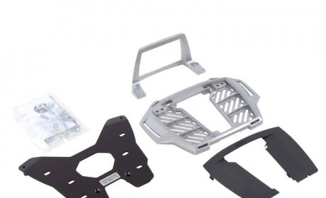 Nosilec za zgornji kovček, ki je sestavljen iz kompleta za montažo, specifičnega za model, in adapterske plošče Alurack za montažo zgornjih kovčkov Hepco & Becker ali mehke prtljage (ni primeren za zgornje kovčke z univerzalno plastično ploščo).