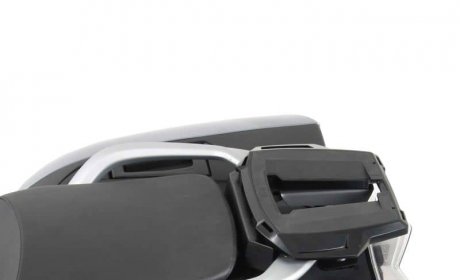 Nosilec za zgornji kovček, ki je sestavljen iz kompleta za montažo, specifičnega za model, in adapterske plošče Alurack za montažo zgornjih kovčkov Hepco & Becker ali mehke prtljage (ni primeren za zgornje kovčke z univerzalno plastično ploščo).
