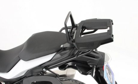 Nosilec za zgornji kovček, ki je sestavljen iz kompleta za montažo, specifičnega za model, in adapterske plošče Alurack za montažo zgornjih kovčkov Hepco & Becker ali mehke prtljage (ni primeren za zgornje kovčke z univerzalno plastično ploščo).